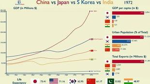 中日韩印,这四个国家都有着悠久的历史和独特的文化。在对比视频中,我们可以看到: